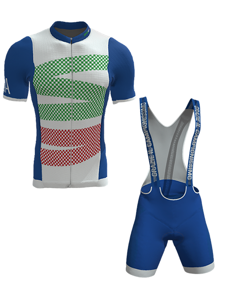 Unieke Italiaanse wielerkleding. Verkrijgbaar in 6 unieke ontwerpen: Italian Spaghetti, Azzurri Cipressa, Italian Powerbank, Stelvio ZigZag, Golden Cipressa Fall en Black Cipressa Fall.