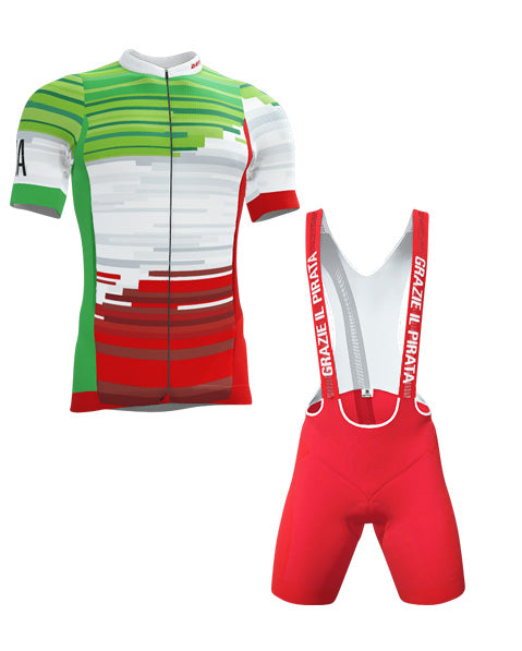 Unieke Italiaanse wielerkleding. Verkrijgbaar in 6 unieke ontwerpen: Italian Spaghetti, Azzurri Cipressa, Italian Powerbank, Stelvio ZigZag, Golden Cipressa Fall en Black Cipressa Fall.